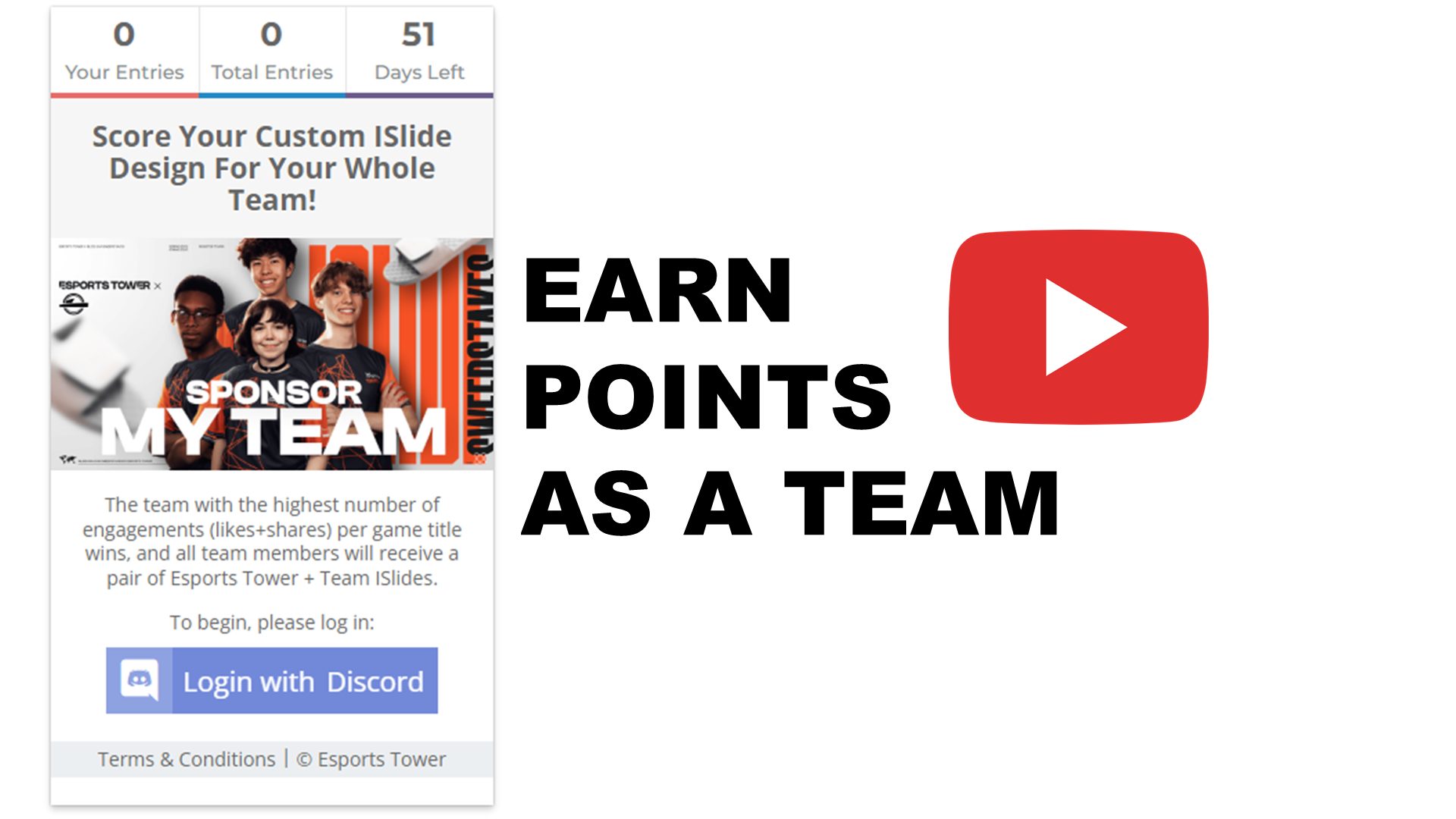 You must include #EsportsTower #ISlide #StandInWhatYouStandFor #TowerAbove in your posts (if you run out of space, ensure you use the first 2). You can also post short videos and multiple custom slide designs that you envision for yourself/team. You’ll find a bunch of artwork including team logos, backgrounds, etc., or you can upload your own art in the ISLIDE CUSTOMIZER